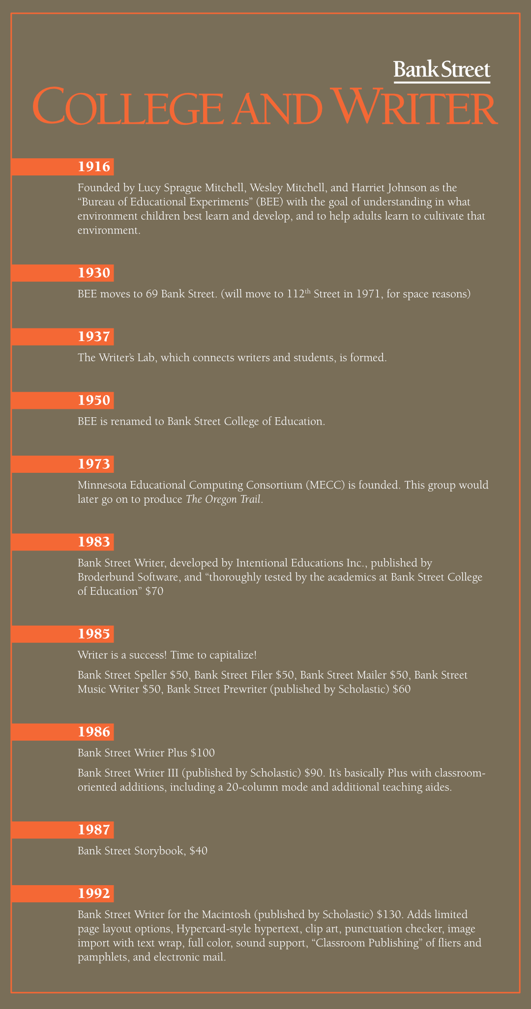 BEE is renamed to Bank Street College of Education.